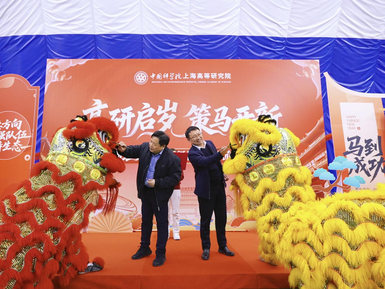 活力舞蹈与舞狮表演轮番登场,动感舞姿点燃氛围,灵动雄狮腾跃展祥。evo真人视讯原院长黄政仁和新任院长邓海啸共同为狮子点睛,代表着高研院拉开了承上启下、接续奋进的序幕。现场张灯结彩、年味盎然,红彤彤的装饰与欢快乐曲交织,暖意满溢。
